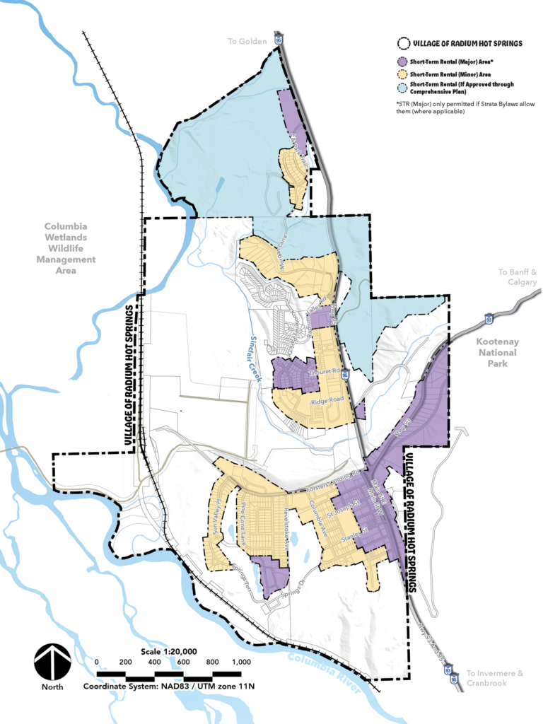 The Village of Radium Hot Springs regulates short-term vacation rentals (STRs) to help balance tourism needs with long-term housing availability. The updated draft Official Community Plan directs STRs toward tourism amenities while prioritizing long-term housing in residential neighbourhoods.